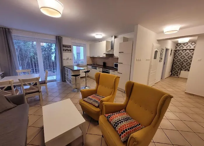 Apartament zapewnia gościom wygodę korzystania z udogodnień do samodzielnego przygotowywania posiłków, takich jak wyposażona kuchnia i jadalnia na świeżym powietrzu. Najbliższy przystanek autobusowy Baltycka przy Wylotowej znajduje się o rzut kamieniem od obiektu noclegowego.